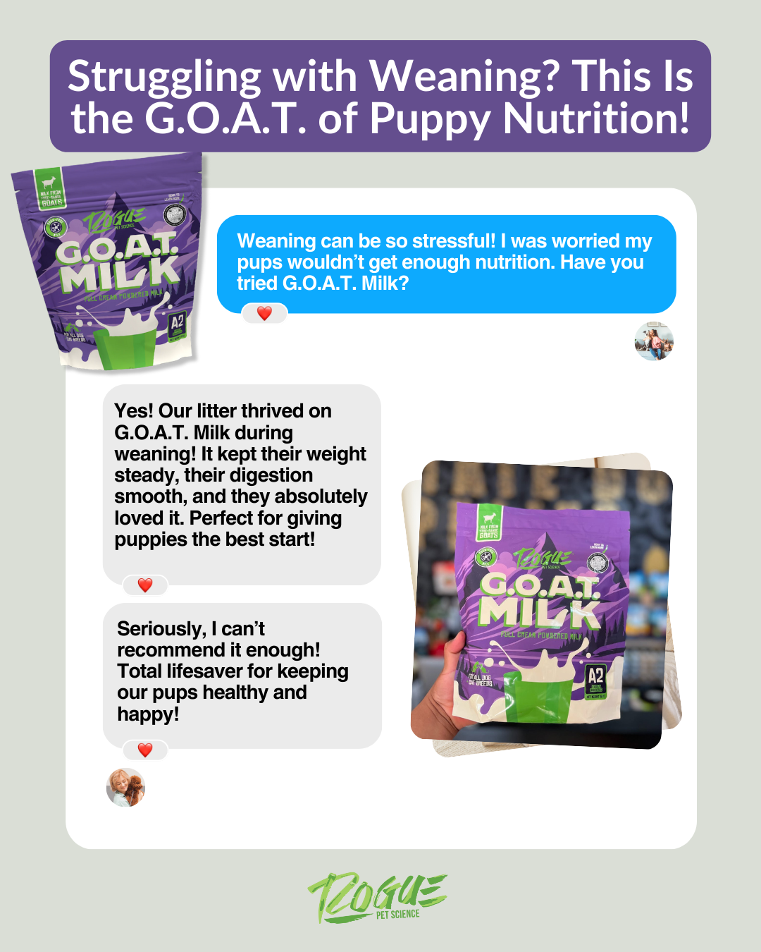 Breeders reach for G.O.A.T. Milk the moment pups hit the four-week mark because it solves every early-weaning headache at once: it dissolves in seconds into a creamy, lactose-friendly formula that tiny stomachs can digest, delivers colostrum, probiotics, and natural electrolytes for firm stools and steady weight gain, and gives exhausted dams a much-needed break while the litter happily polishes off every bowl.
